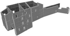 Fig. 1. Modellazione agli elementi finiti di un edificio speciale: Castello di Castelvolturno (CE)