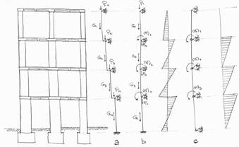 Fig. 7. Il telaio piano può essere semplificativamente considerato una trave continua o disarticolata agli appoggi di piano