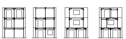 Fig. 8. Modellazione a telaio equivalente di pareti con aperture regolari e non.