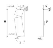 Innanzitutto per confrontare il modello a blocchi con quello a filo di ferro della trave occorre considerare uno schema di trave ad asse spezzato. Inoltre il sollevamento del blocco superiore dovrebbe comportare la migrazione dello sforzo N verso lo spigolo esterno. Infine il sollevamento potrebbe essere impedito o fortemente contrastato dalla parte superiore dell’edificio (si pensi agli ordini di piano inferiori).